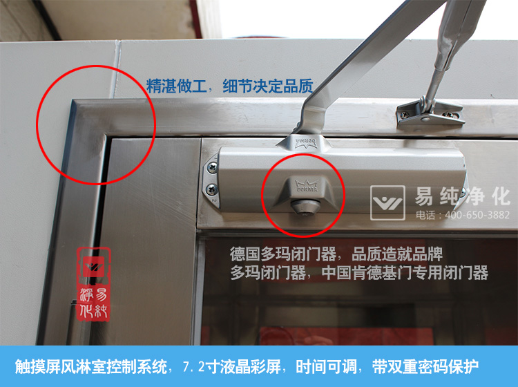3、電子聯鎖:電子聯鎖是風淋室當中最重要的原配件之一,缺少聯鎖的風淋室嚴格意義上不能稱之為風淋室,因為其不能強制吹淋,不能起到緩沖作用。市場上部分廠家采用自制陰極鎖,這種鎖未經過老化實驗,且加工粗糙,精密度不高。由于風淋室電子聯鎖是頻繁使用的部件,所以質量不可靠的電子鎖容易造成卡鎖,雙門無法打開而將人員鎖在里面了。