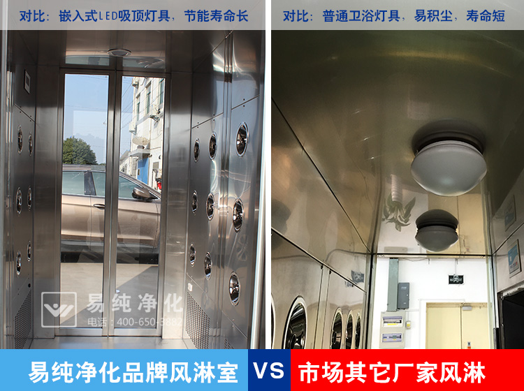 1、風淋室的材質:首先從材質上分類主有彩鋼板,鋼板型風淋室和不銹鋼風淋室三種主流材質。其中彩鋼板因質量較差目前已經基本不再使用,鋼板風淋室主要看材質的厚度和噴漆的過程,市場上有的采用0.8-1.0的材質厚度,這種厚度偏薄,容易變形。一般建議在1.2MM或以上的鋼板材質較佳。在噴塑上面,很多廠家都是自噴或者是到小廠家噴塑。這其中有一個最重要的環節就是需要酸洗磷化,很多廠家為了節約成本或者噴塑廠家實力不行,未經過酸洗磷化,如果缺少這個步驟,油漆本身很難與設備粘合,時間一長,很容易整場的脫漆。