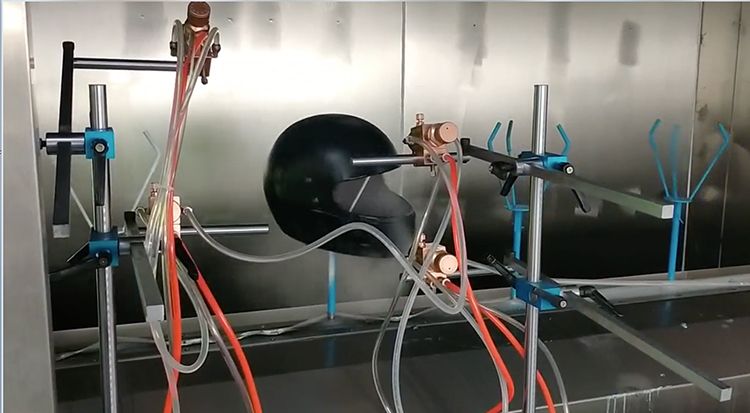 頭盔的生產(chǎn)采用塑料粒子經(jīng)過高溫熔化,經(jīng)過壓塑機的模具成型,然后經(jīng)過冷卻、上架。這個是頭盔的成型階段,成型的頭盔都是一種顏色,但實際我們市場采購和銷售的頭盔都是五顏六色,有各色花系的,這個就是本文提到的后期自動噴漆線的工藝流程,下面詳細圖文介紹凈化噴漆線的作用及安裝實際案例介紹。