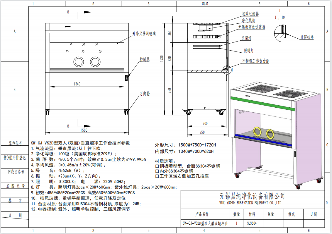 易純凈化無菌接種超凈工作臺技術參數: